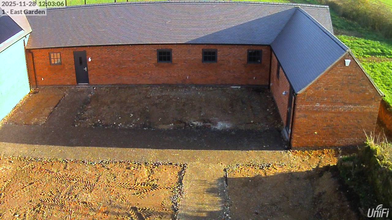 The main build team are firmly in ‘finishing up’ mode, having completed the drainage works yesterday. The rainwater attenuation pond is now completed and the area to the East of that has been re-levelled and profiled into the GrassGuard blocks bounding the block-paved parking area.