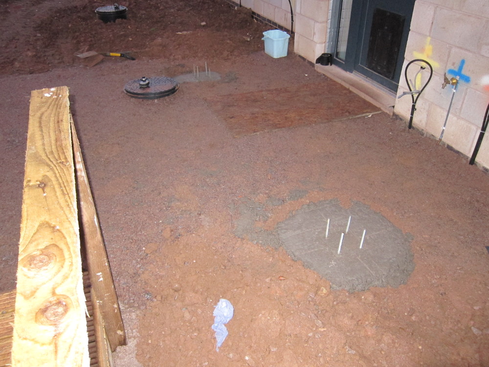 - Installing the concrete foundation pads which will support the galvanized steel columns for the canopy over the side door