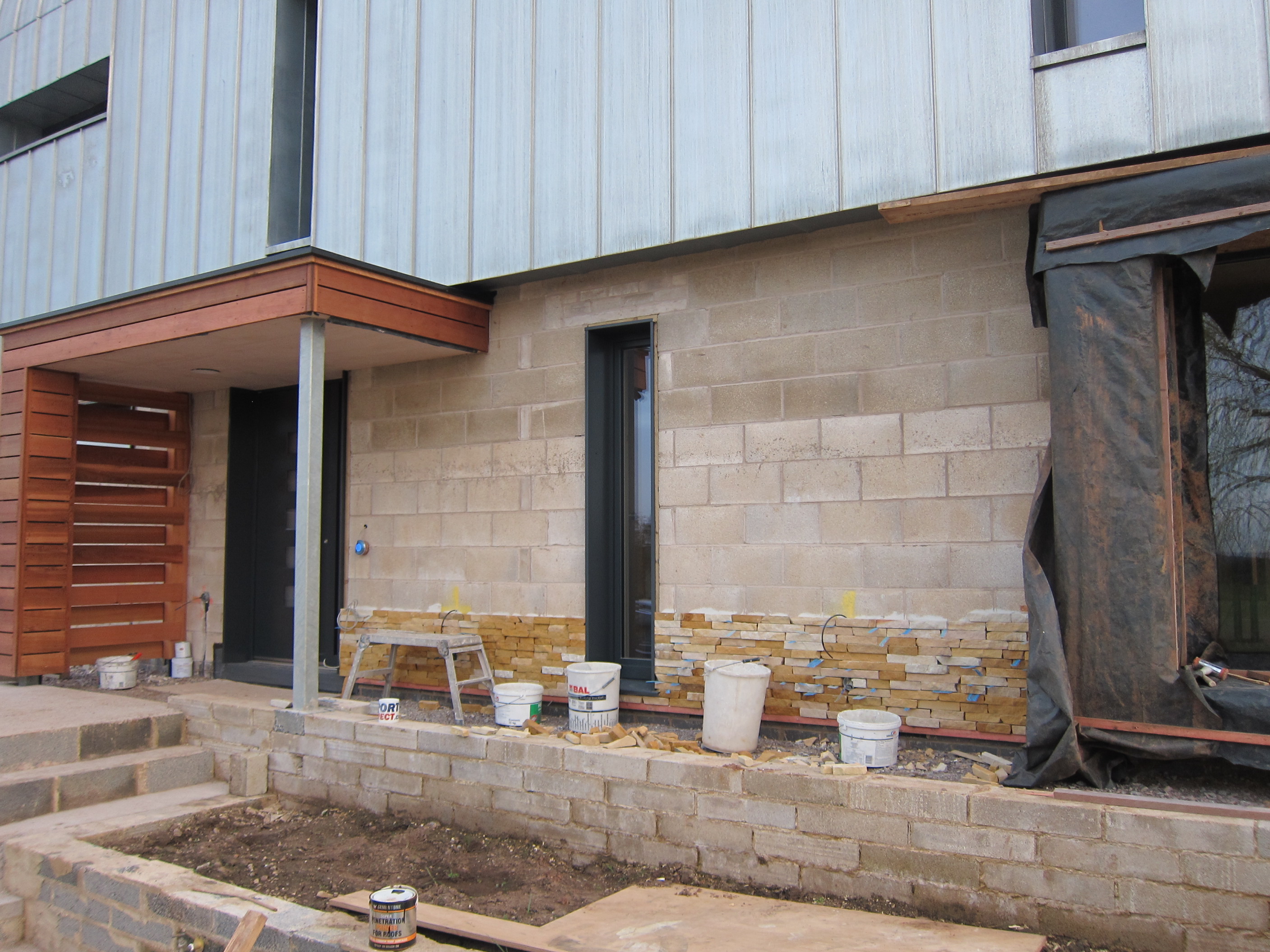 Week 72, Day 1 Posted on 2017-03-13 by dMb Reply Week 72, Day 1: The main build team will be off site for a few weeks but some of the subcontractors are continuing to work, notably on the stone cladding Week 72, Day 1 Completed stone cladding on western elevation First few courses of stone cladding on the north west corner