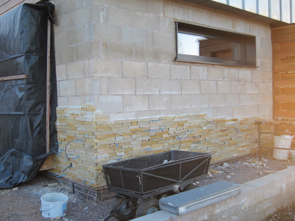 Week 72, Day 3 Posted on 2017-03-15 by dMb 2 Week 72, Day 3: More work on the stone cladding Week 72, Day 3 Stone cladding completed to the right of the front door Progress on the last section of stone cladding, on the north-east corner