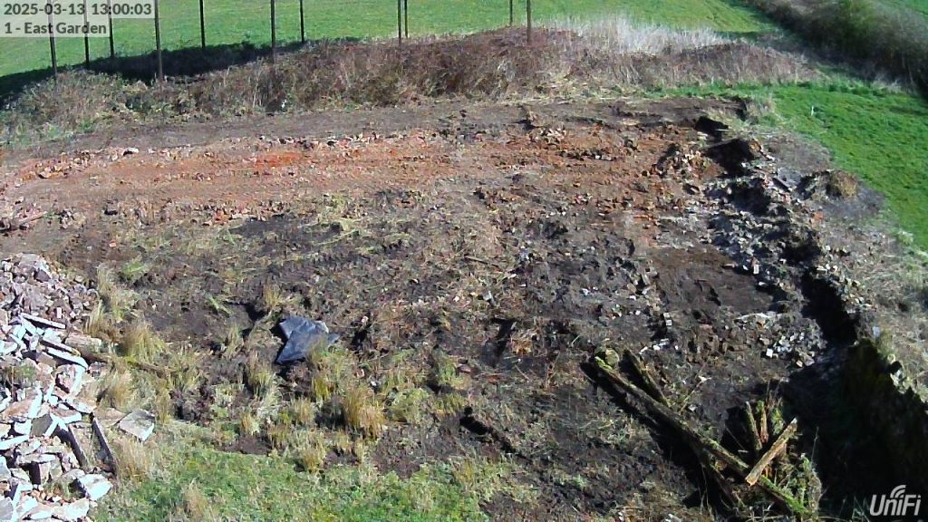 More clearing of the site, moving the sandstone blocks that had formed a dry stone wall (for later re-use) and further preparing the area out of shot to the left.