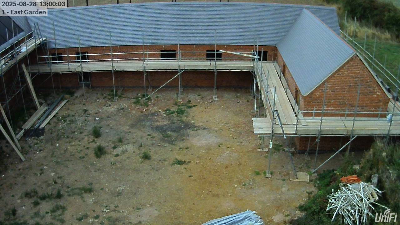 Completion of the final section of roof tiling; the only element of the roof still left to finish is the installation of the Ridge tiles, which is still waiting for the delivery of suitable dry-fix ridge kits. Some were delivered on Tuesday but they weren’t the ones which had been ordered – and the ‘correct’ ones seem to be in short supply.