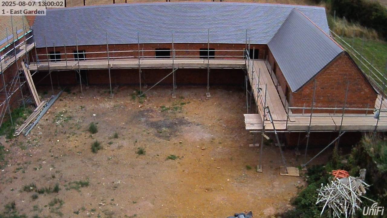 Again; more roof tile installation. The Utility Room is now complete (apart from the Ridge tiles and the mortar at the eaves) and work has progressed to the East-facing side of the Workshop (facing directly away from the camera).