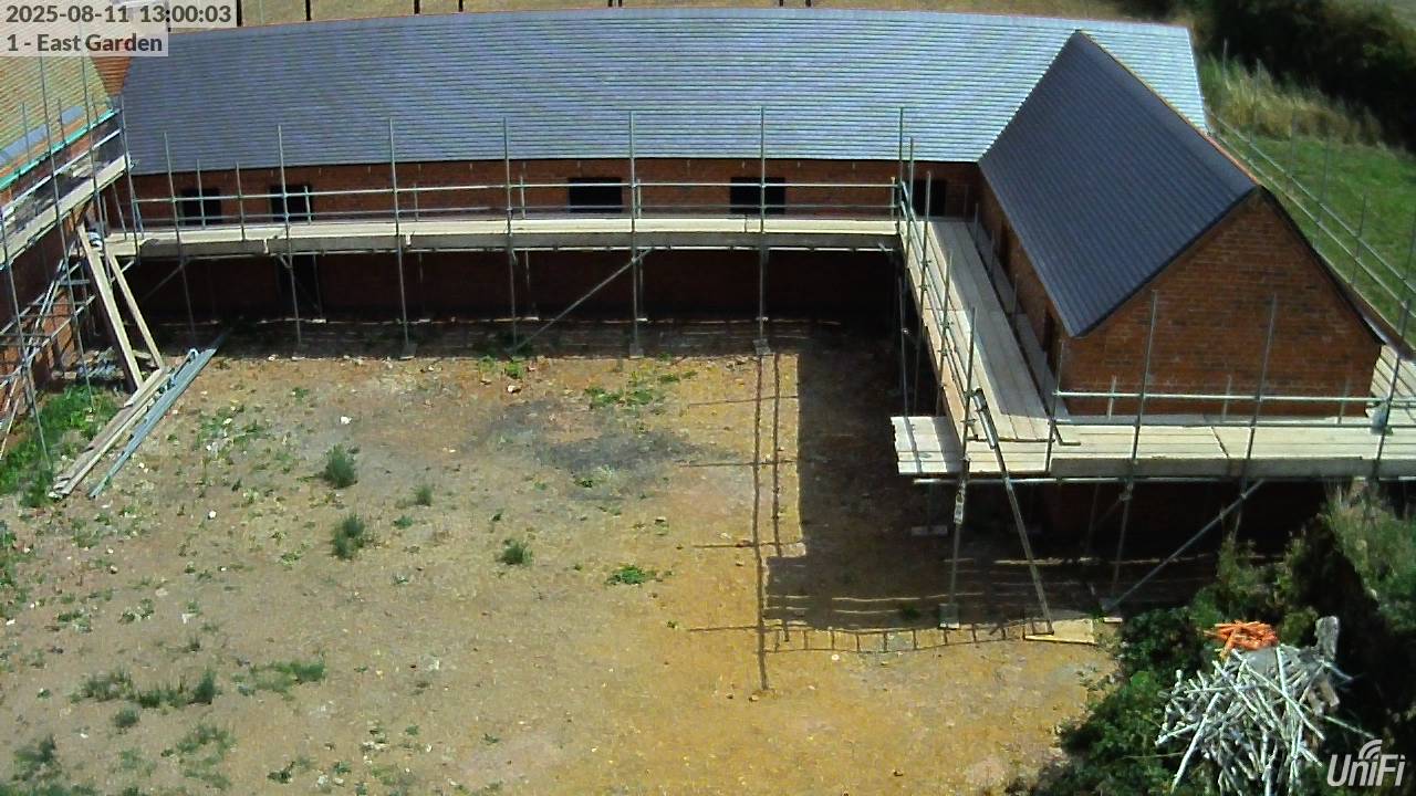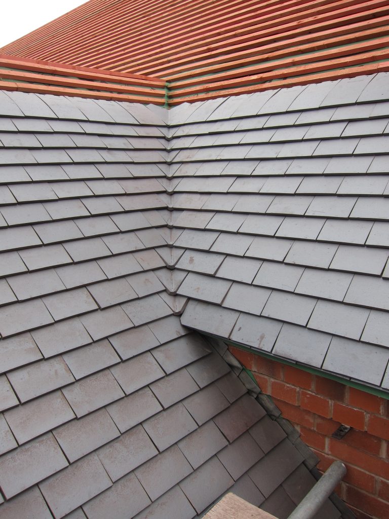 More roof tiling – and another few days forecast to be over 30C – the last section of roof tiles over the Workshop and some fiddly bits around the valley where the Workshop roof meets the Garage roof, and lead flashing on the section below, where the Workshop roof meets the wall.