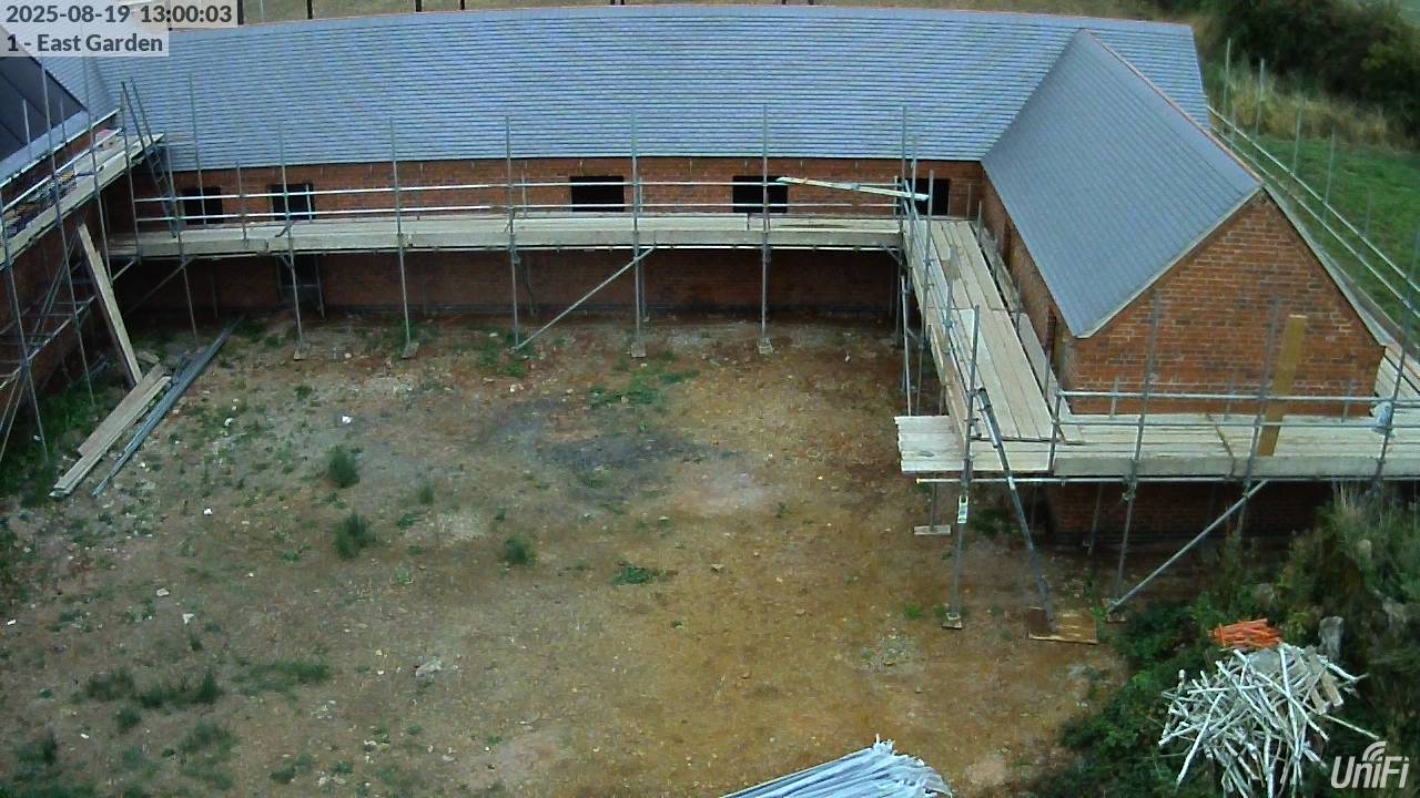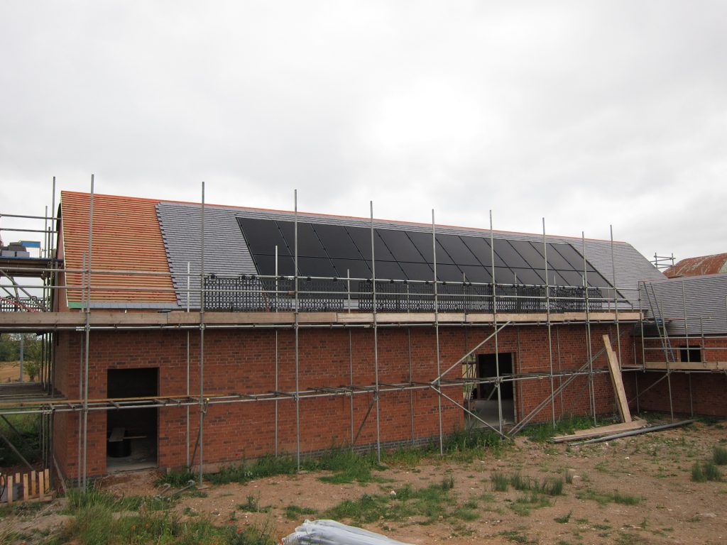 More progress on the roof tiling – above and to the left of the solar PV array.
