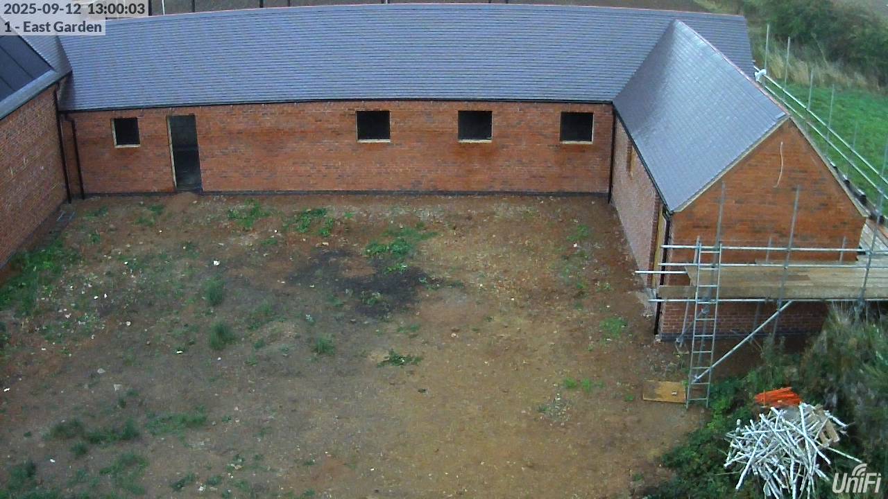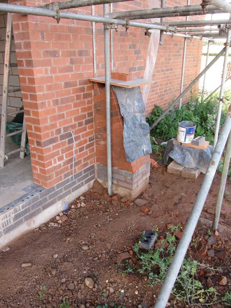 The weather has turned showery again, but in between the showers the build team made good progress with the first of two decorative ‘buttresses’ that are reproducing a feature from the original barn (likely retrofitted to the original barn when the original walls started to move on their very limited foundations).