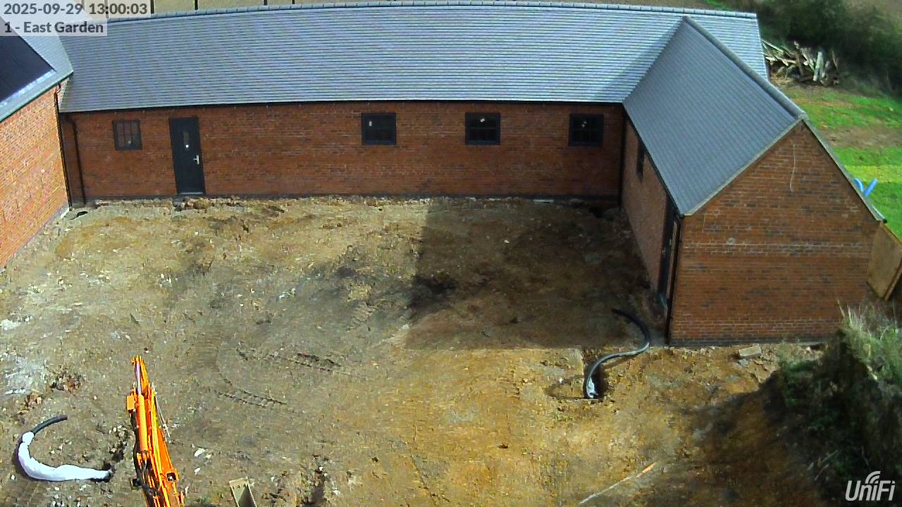 More groundworks in the Courtyard, this time with a focus on the ‘land drains’ nearer the house – including digging down to Courtyard level at the South-West corner.