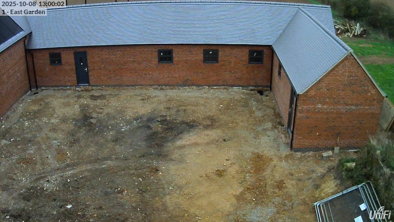 - The short pale grey ‘pipe’ is a duct which will be replaced with a much longer one and will contain data cables connecting the House to the Outbuildings