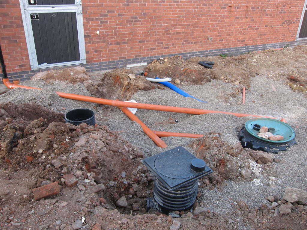 - The ground-level and land-drain drainage which needs to ‘bypass’ the rainwater tank (connected at the ‘covered’ inspection chamber nearest the camera)