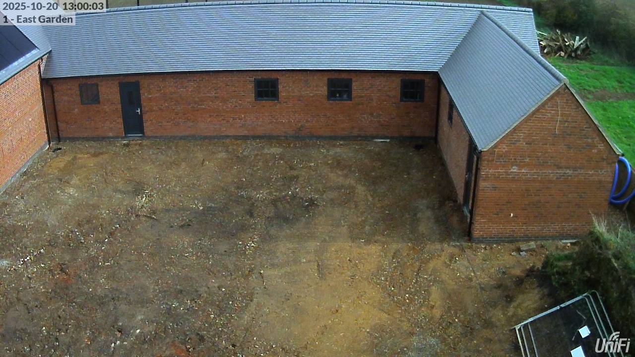 A bit more rain overnight and also forecast for the rest of the week; especially Thursday. It’s surprising how quickly the soil turns into mud which sticks to boots and gets carried inside. While the plan is to leave the Courtyard un-paved until Spring – partially to let the ground ‘settle’ and partially to check how well the land-drainage is working – it’s going to want some temporary pathways creating with paving slabs (there are some left over from around the site cabins from when the House was built).