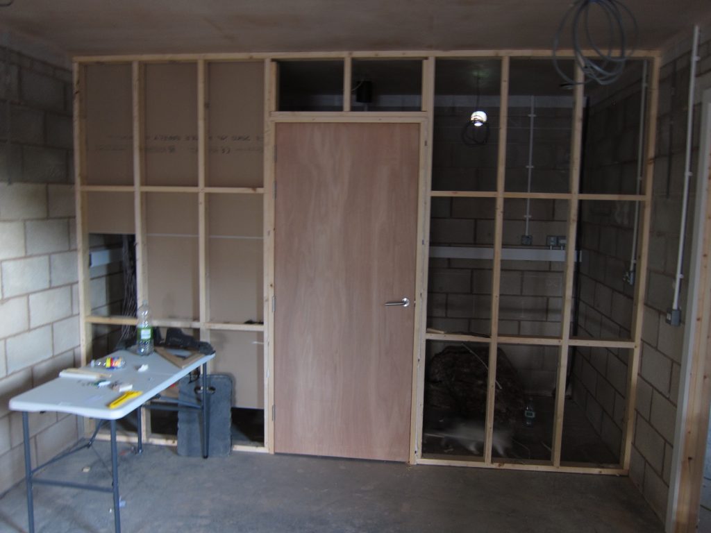 - The two doors installed in blockwork openings have their architraves added, with additional architrave ready to be added to the Plant Room door once the plasterboard has been installed and skimmed
