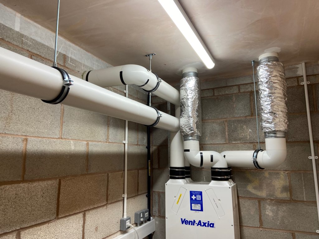 I decided to install the MVHR system myself, since most builders still don’t seem very familiar with the technology and while some aspects are a bit fiddly none of the work is difficult. As the building is not considered a “Dwelling”, Building Control aren’t concerned about the certification of the ventilation installation – whereas they would be in a House.