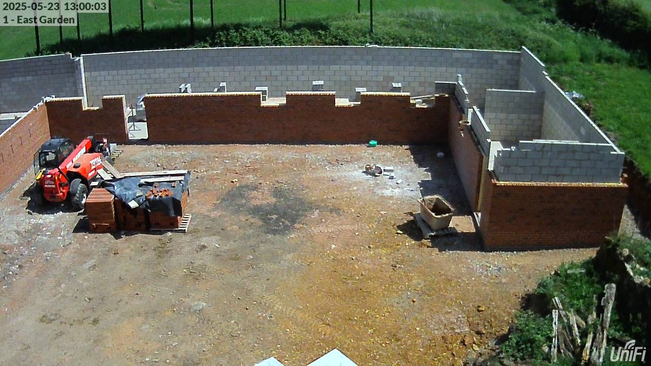 All the brickwork is now up to a consistent level in preparation for the scaffolding being installed (booked for Tuesday) so there’s been more progress with the blockwork – on the internal walls and for the Utility room (on the right).