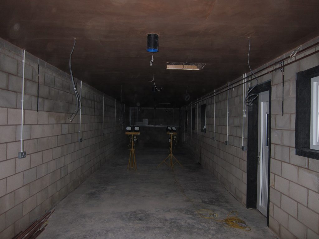 The main progress today was the plaster skim coat being applied to the Workshop ceiling – which was something of a challenge given the large area; roughly 80 square metres.