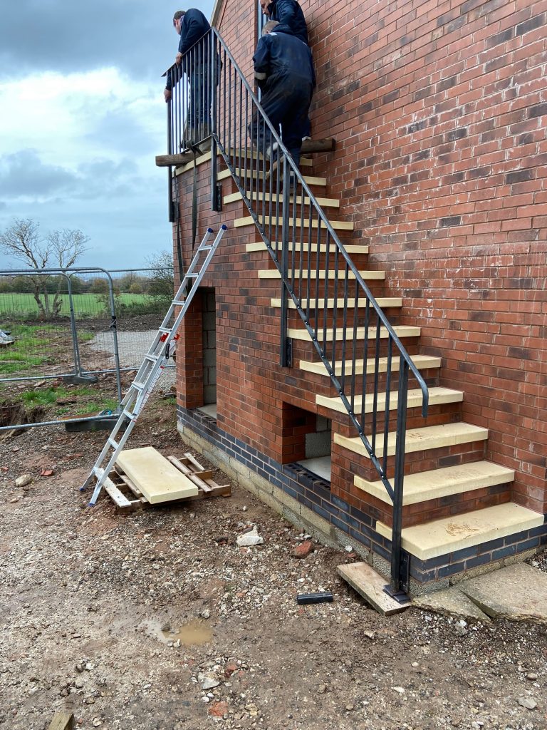 One other bit of progress was a trial fitting of the steel handrail for the external staircase, before that gets fully welded and galvanised. It just needs a couple of adjustments to the fixing brackets – and the ‘return’ section of the rail for the landing needs fabricating.